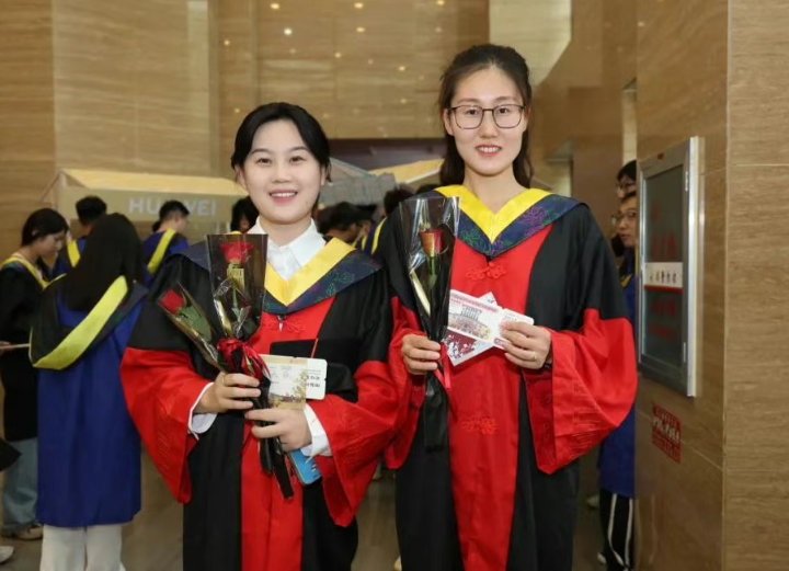 在庄重的音乐声中学位授予仪式正式开始,博士、硕士和学士毕业生依次上台,公司领导为他们逐一拨穗,颁发学位证书。每一次拨穗都伴随着掌声与欢呼,这一时刻,成为毕业生人生中最闪亮的记忆。
