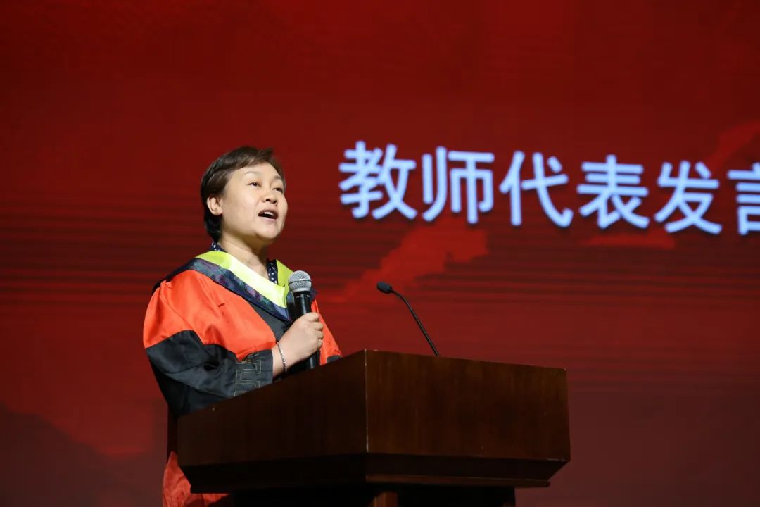 教师代表邓红霞老师在毕业致辞中向圆满完成学业的学子们送上深情祝福。她勉励大家永葆求知热情,以积极乐观的心态迎接人生新阶段,在各自岗位上奋发有为、建功立业。“无论你们走得多远,母校永远是你们的精神家园。”邓老师动情的话语,饱含深情厚谊。