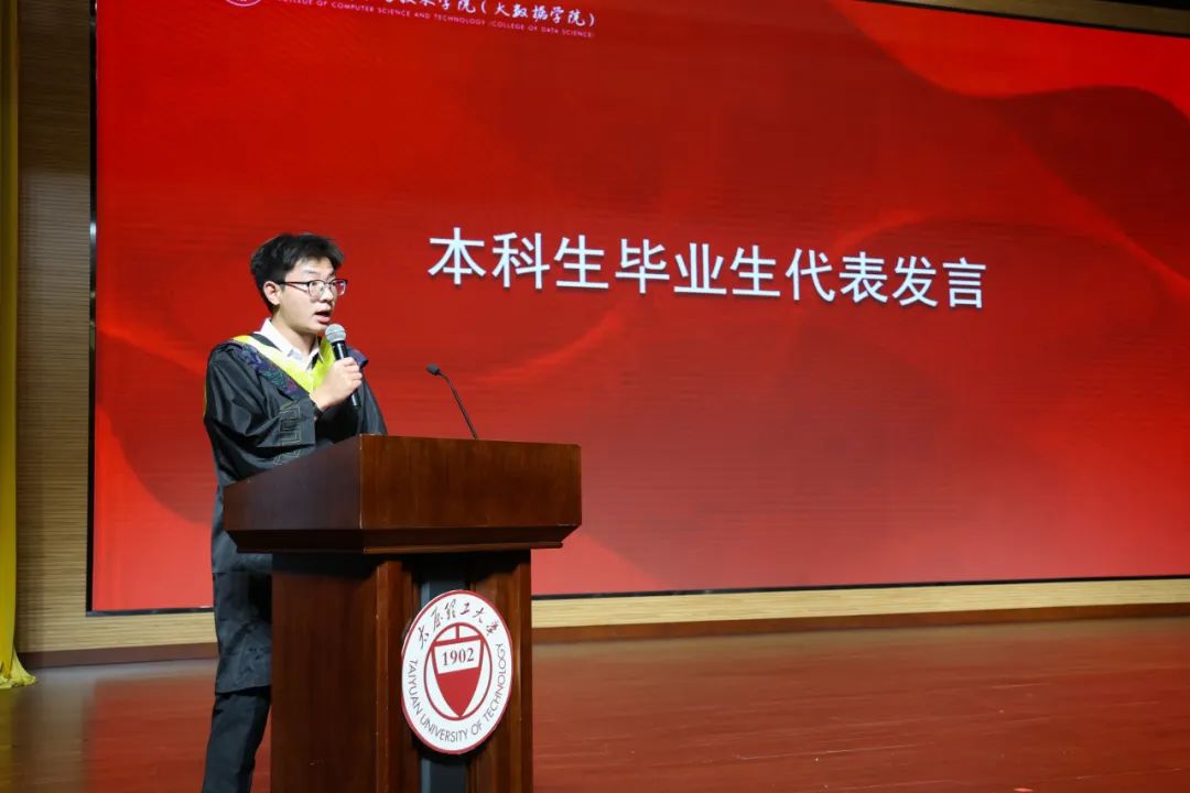 本科生毕业生代表崔星明同学对公司、老师、家长的倾心付出致以最诚挚的感谢。他回顾成长历程、展望未来征途,满怀信心地表示:明向湖畔走出的新工科青年,应深植“国民表率、社会栋梁”的精神烙印,勇担“复兴栋梁、强国先锋”的时代使命。