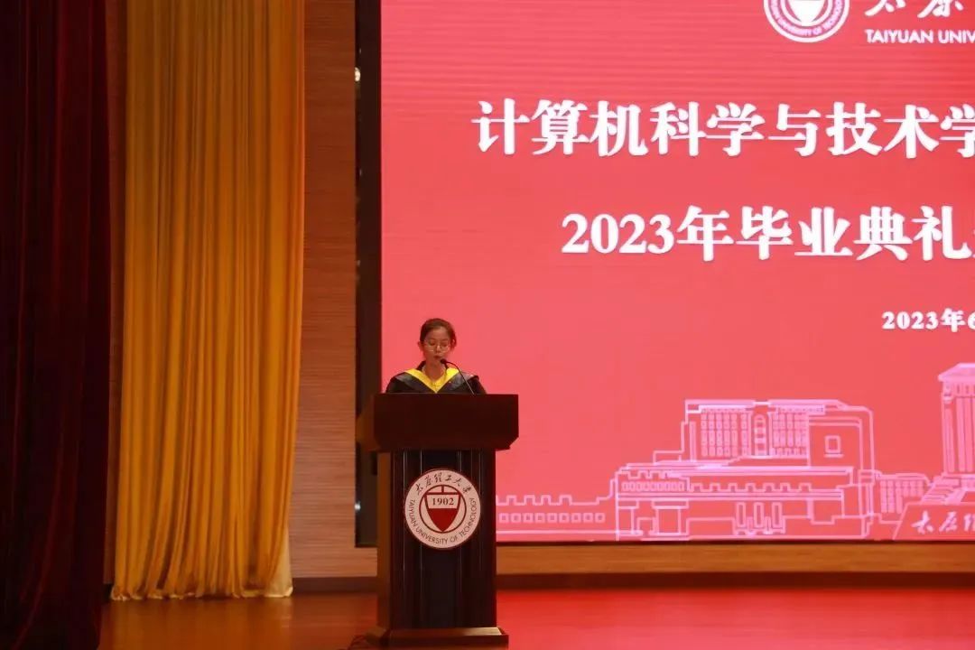 本科毕业生代表郝紫帆同学对公司、公司及各位老师的培养表示衷心的感谢。她说,面对分别的场景,面对未知的旅程,让我们的留恋与坚定同在,让我们的感激与荣耀同在,让我们的信心与责任同在,实现自我价值。