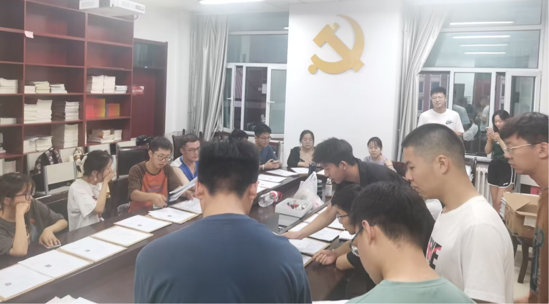在档案整理过程中,支部党员分工有序,配合默契,采用“流水线”的工作方式,从材料整理到清点核对,从封装入袋到盖章密封,从线上登记到贴单转寄,每道工序都有专门同学负责,各司其职,不仅提高了效率,更保证了各项工作的规范性、完整性。