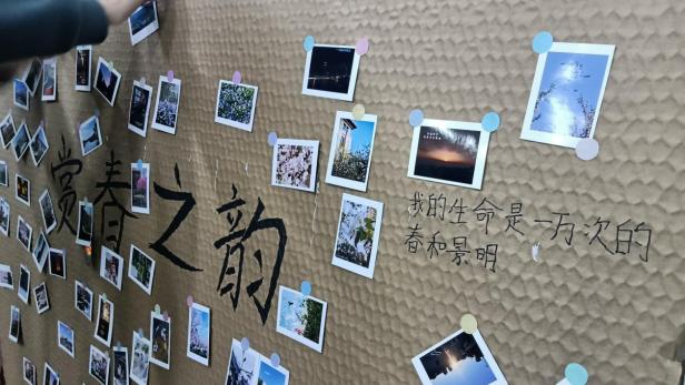 最后,主持人号召大家将领到的照片贴到活动展板上,共同制作了一面充满春日气息的摄影墙。大家一同与照片墙拍照留念,记录下这个难忘的时刻。