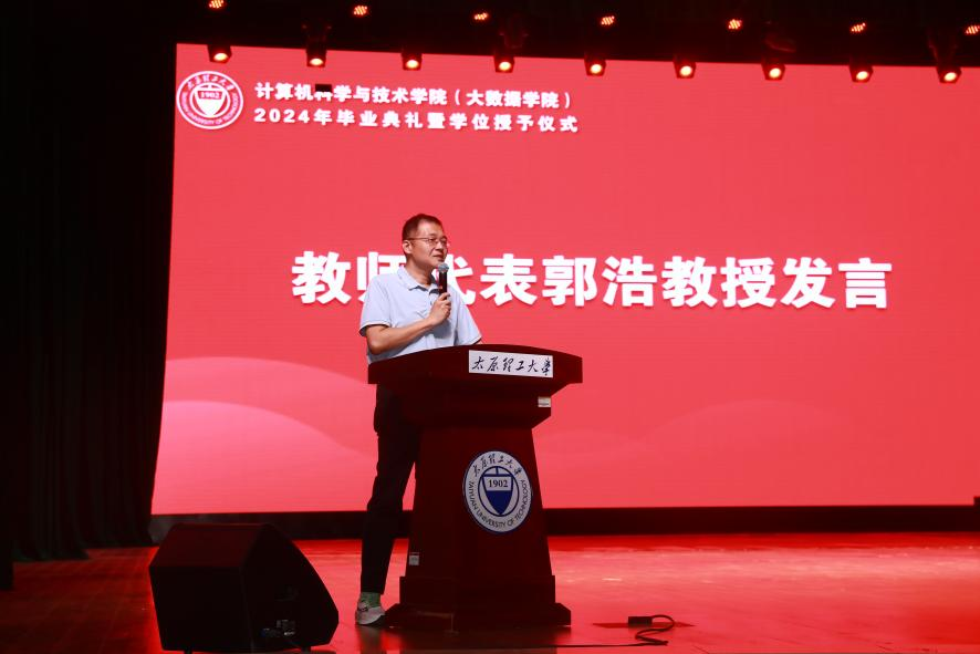 最激昂是少年志,最闪耀是追梦人。教师代表郭浩教授叮嘱处于人生起跑阶段的毕业生们立身百行、以学为基,立鸿鹄志、做奋斗者,不畏高山、不惧深海,以梦为马,踊跃到新时代新天地去大展身手,永远保有毕业临行前宝剑出鞘、笑傲江湖的豪迈,在广阔天地中研究现实矛盾、实践胸中所学,带着理论知识寻找实践坐标,带着心中热爱奔赴山海!