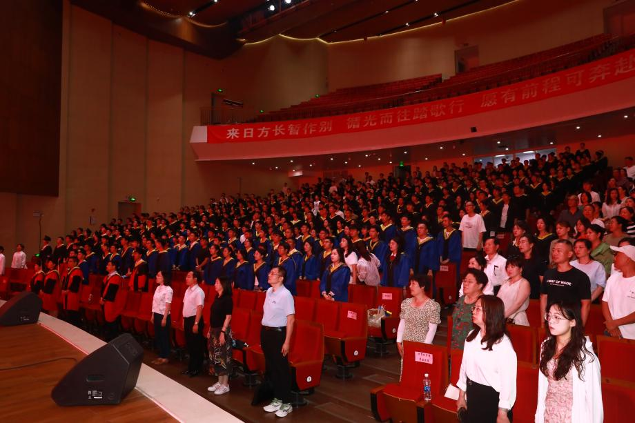 毕业典礼暨学位授予仪式在嘹亮的国歌声中正式开始。