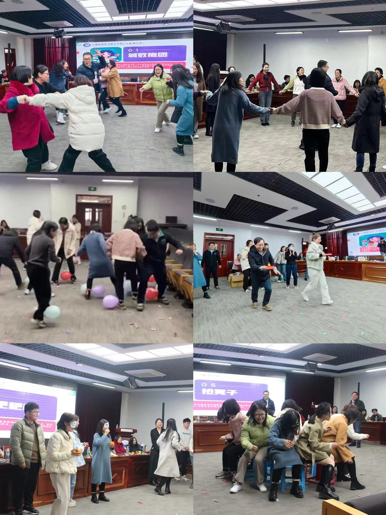 趣味游戏环节让整个会场充满欢声笑语,洋溢着喜庆的节日氛围。喊数抱团、踩气球、传乒乓球、互喂水果、抢座凳子、击鼓传花等传统游戏时而让人兴奋,时而让人紧张,时而让人激动不已,时而让人开怀大笑......平日里讲台上声情并茂的脸庞,在一片欢声笑语中也显得格外温柔甜美,成为一道道靓丽的风景线。